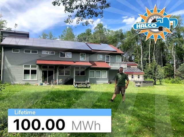 Ithaca, NY customers, Charles and Susan, just hit 100 MWh of electricity produced with their Halco installed solar arrays! To put this number in perspective, 100 MWh is enough to offset 12.3 homes' electricity use for one year, 7,957 gallons of gasoline consumed, and 77,308 pounds of coal burned. Wow! Congratulations on reaching this milestone!