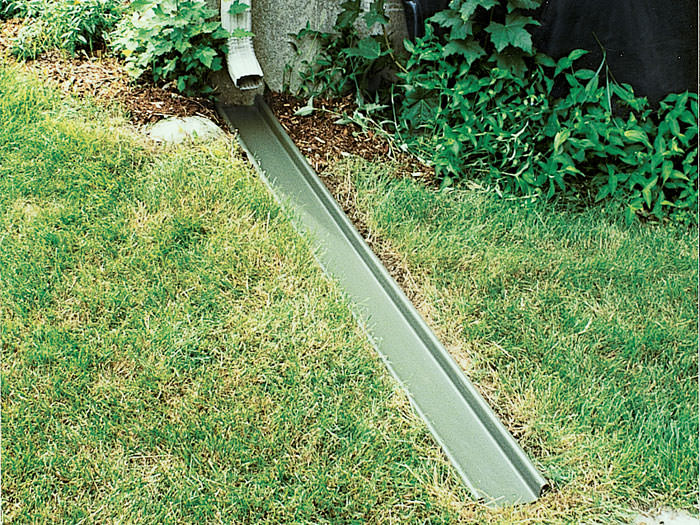 Our RainChute® Downspout Extension is a recessed downspout extension that sits flush with the ground. It's best where the lawn goes up to the foundation since lawn mower traffic won't hurt it.