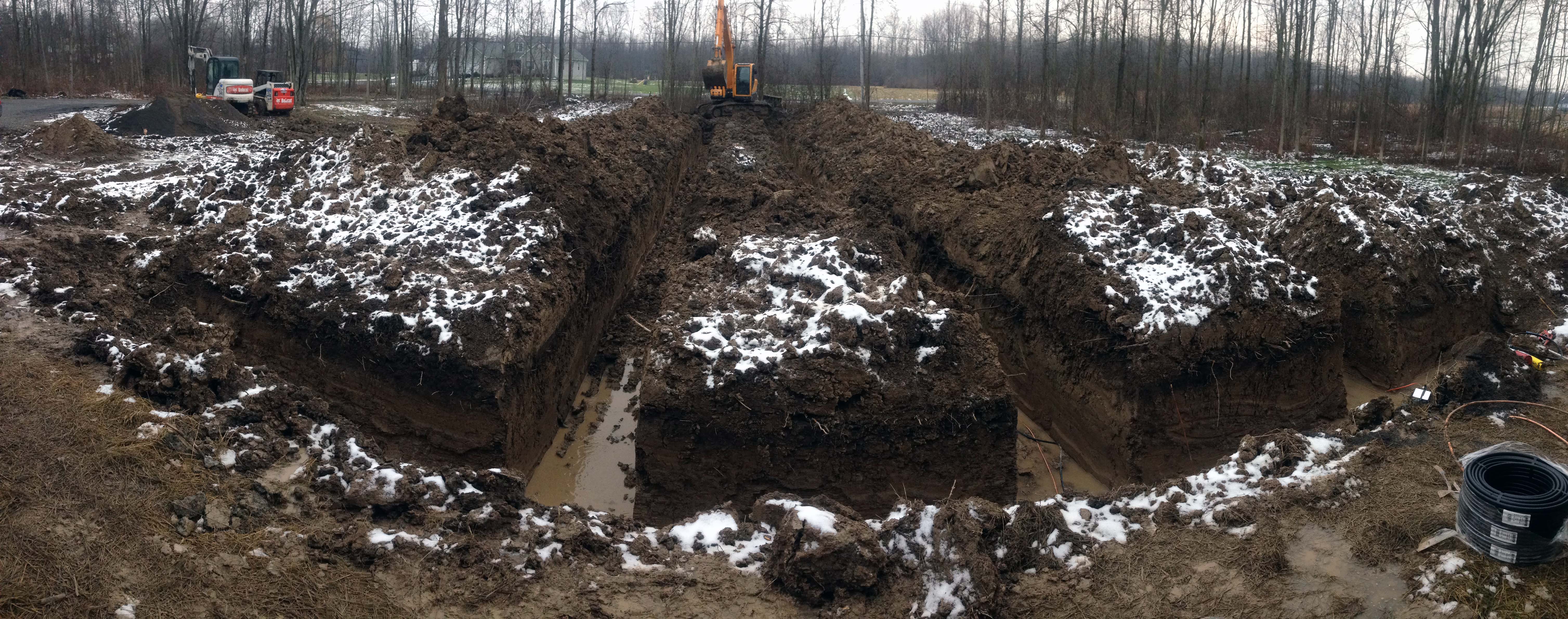This was a new construction 4-ton horizontal-style direct expansion geothermal system we installed in Bridgeport, NY. This system was an ideal choice, as the front yard was still under development as well as the rest of the home. The cost of bringing natural gas to the site was so outrageous that even knowing little about geothermal and its potential applications, the customer came to us for a solution. We noticed that the site exhibited extremely ideal conditions for DX, even though the front yard was full of standing water, we were able to see the potential for harvesting energy in the winter and storing the home’s waste heat during the summer months.