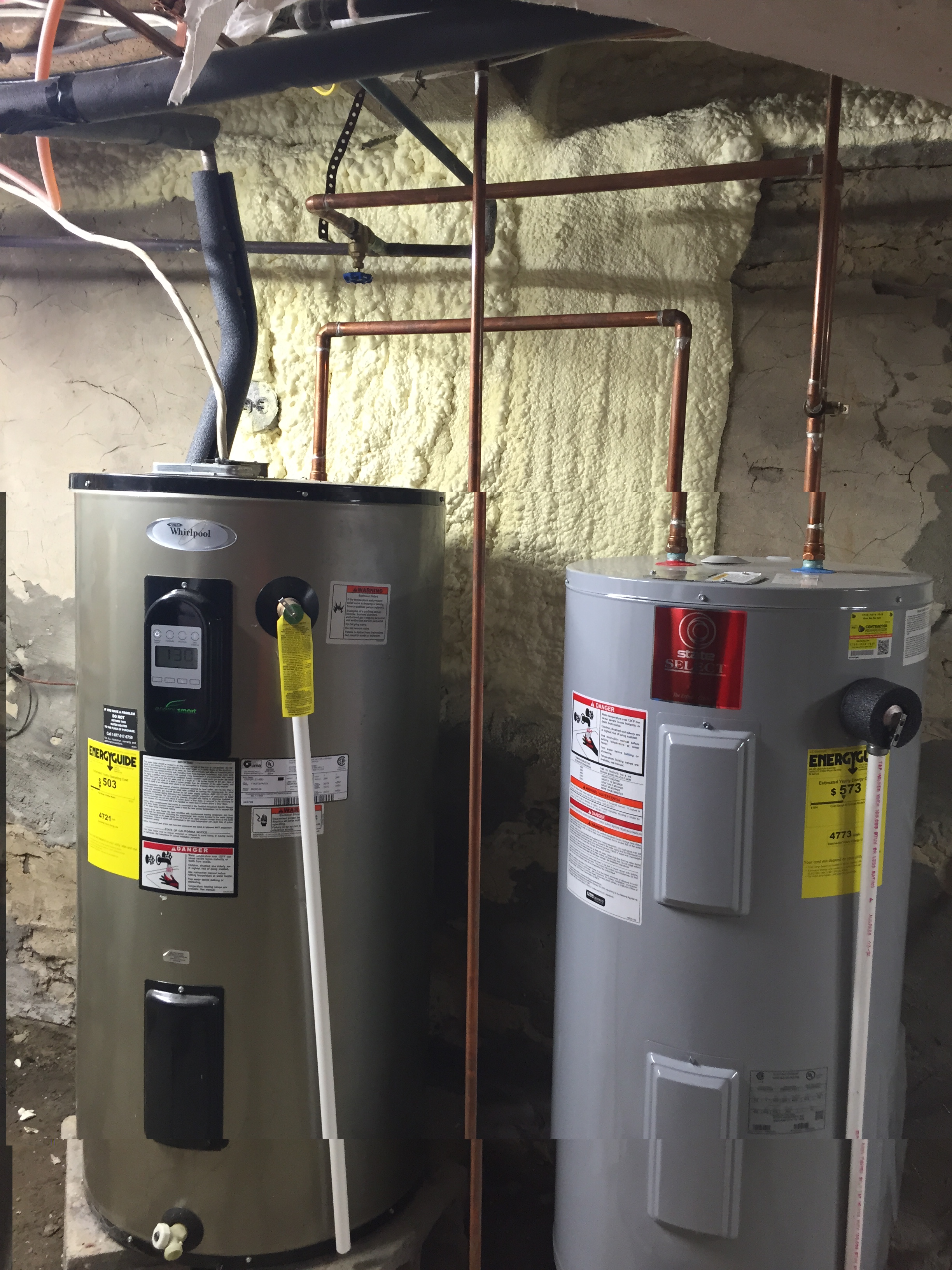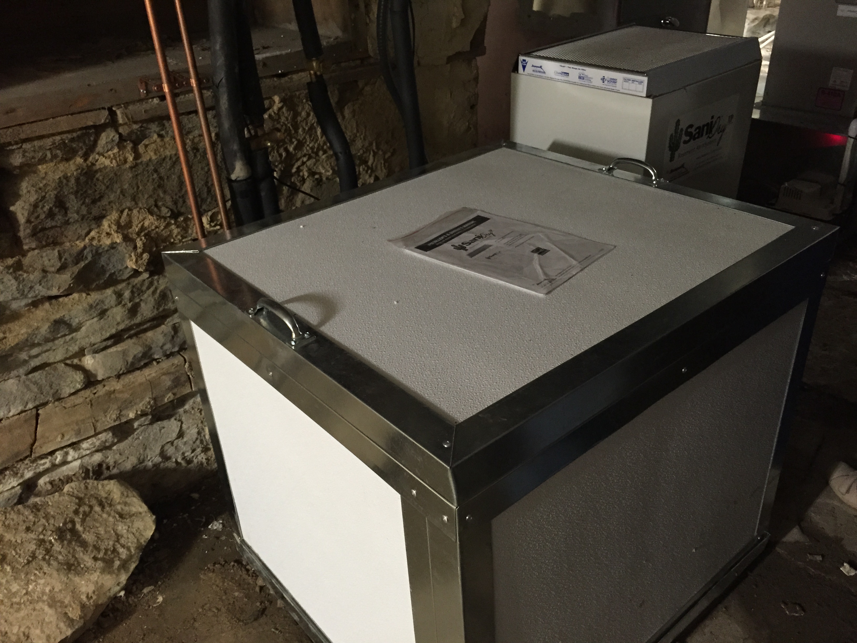 Once insulation was complete, the geothermal project commenced. The most common types of geothermal heat pump systems are horizontal, vertical and diagonal. For these customers, a 6-ton horizontal system was determined to be the best solution. Horizontal systems have the advantage of ease and simplicity of installation and although there was still snow on the ground, our ability to dig trenches for the geothermal system was not hindered. Inside the basement of the home the actual heat pump (including a compressor, and condenser/evaporator) was installed along with the retrofitted furnace that will serve as the air handler. Our technicians have worked with Peggy and MaryLou along the way to ensure they understand the system in it’s entirety.
