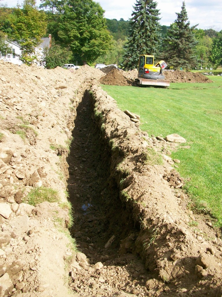A closeup of one of the trenches we dug to install this geothermal system on the property of one of our Ithaca, NY customers.