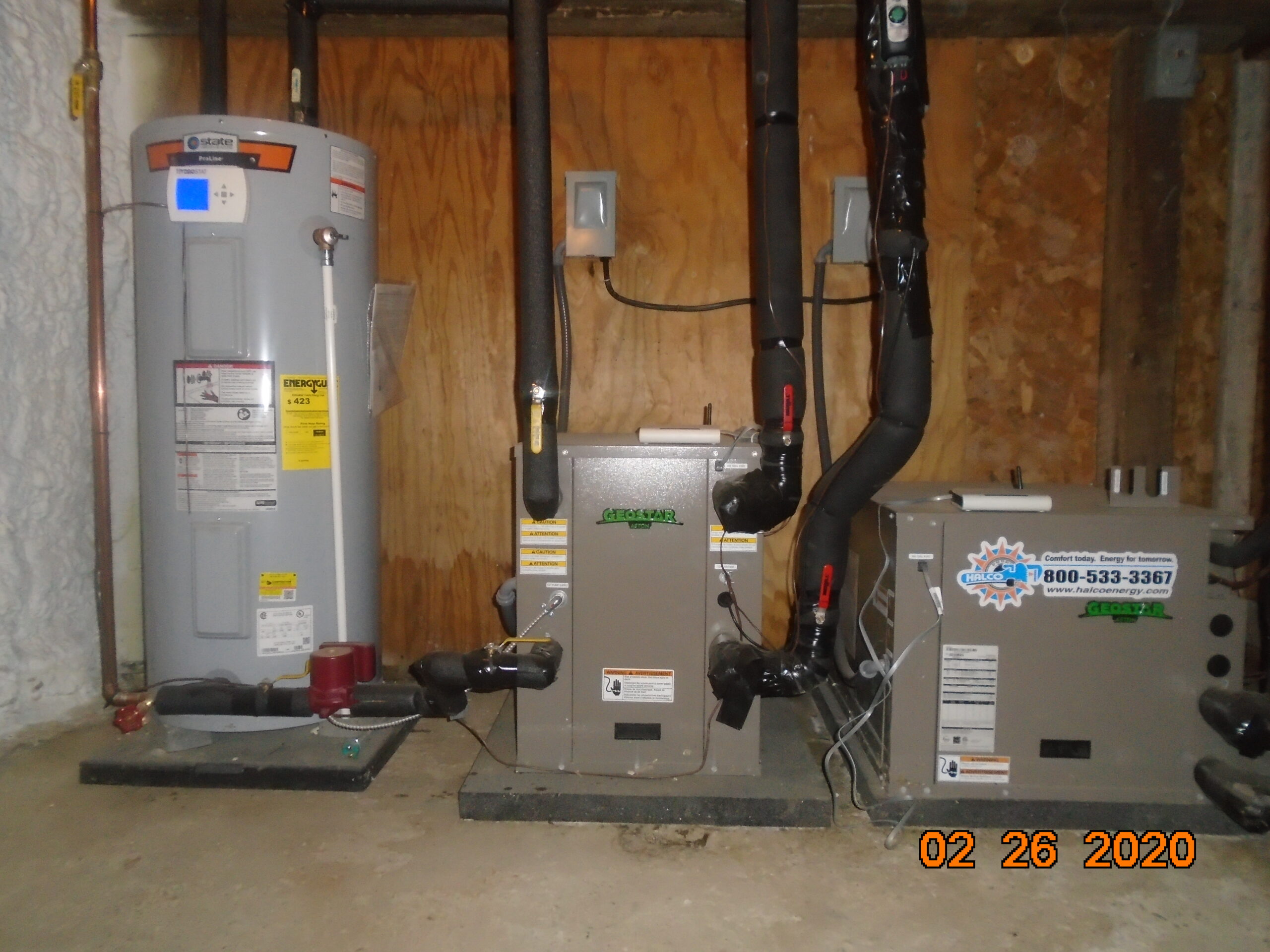 These Freeville, NY customers had an old oil boiler in their 1880’s farmhouse that they were interested in getting rid of. With ideas of upgrading to a more energy-efficient and cost-effective system, they attended a HeatSmart Tompkins meeting and decided to have Halco out to provide an estimate on a new heating system. We installed a 6-ton geo system with 3 heat pumps: one for the first floor, one for the second, and one for the hot water. We also installed all new ductwork and encapsulated the stone basement and walk-up attic. The homeowners used to go through about 750 gallons of fuel oil at $3 a gallon at an annual cost of $2,250. The geothermal cost to operate is about $775 a year!
