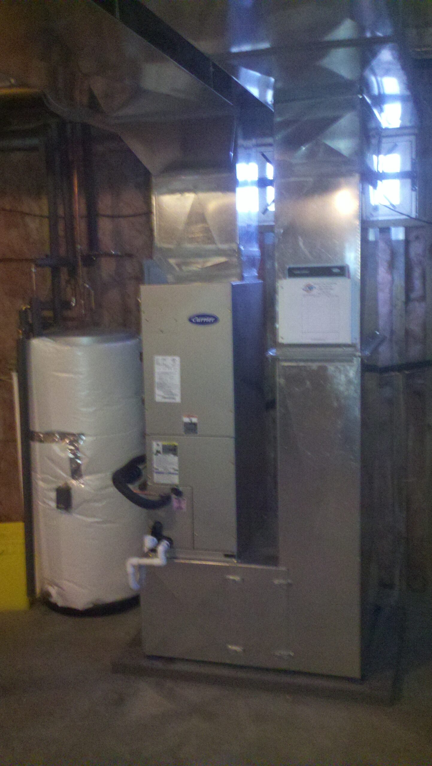 We installed all new ductwork in their basement so that they could have an air conditioning unit on the first floor AND a second system in the attic to cool the second floor. Each system utilizes a 2-ton 2-stage condenser with a 2-stage air handler.