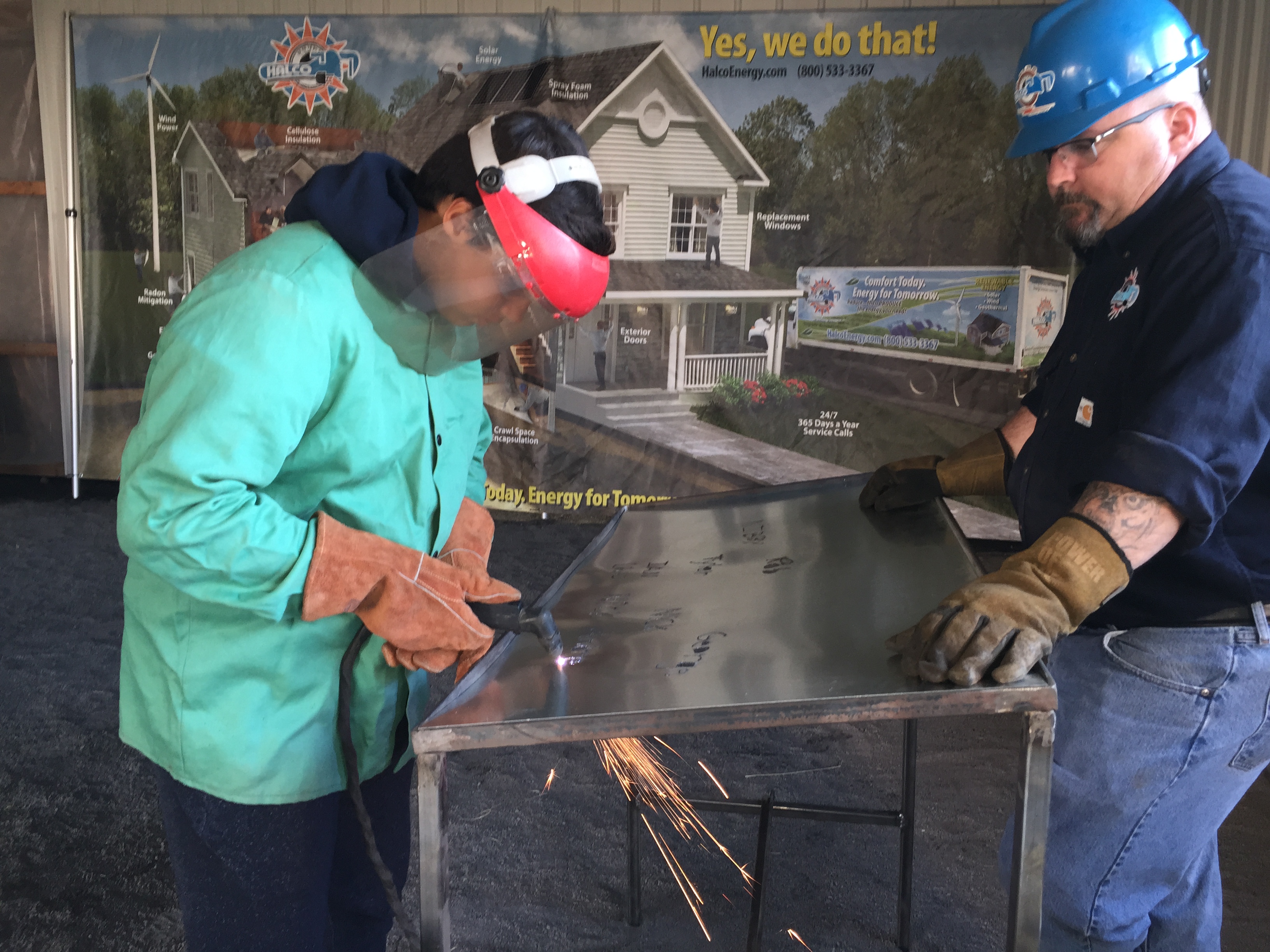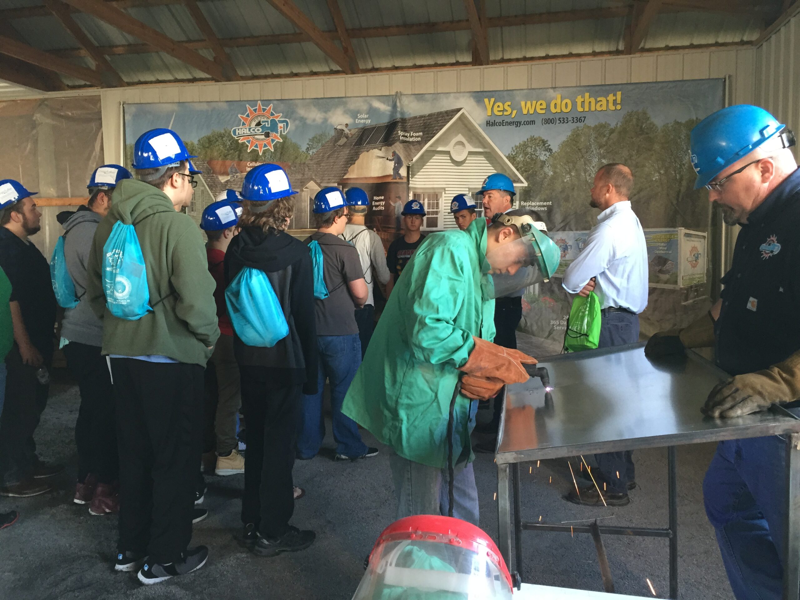 Thursday, October 6th, Halco set up shop at the 11th annual Finger Lakes Works with Their Hands (FLWWTH) event, which was established as a one-day skilled trades fair. We offered scissor lift rides, plasma cutting, conduit bending and soldering stations for nearly 800 students. The students also had the opportunity to learn about geothermal and examine our 20 foot, ‘Yes, we do that’ home display! Each year is a little bigger than the last and next year we plan to add another scissor lift and a jack hammer station to our building!