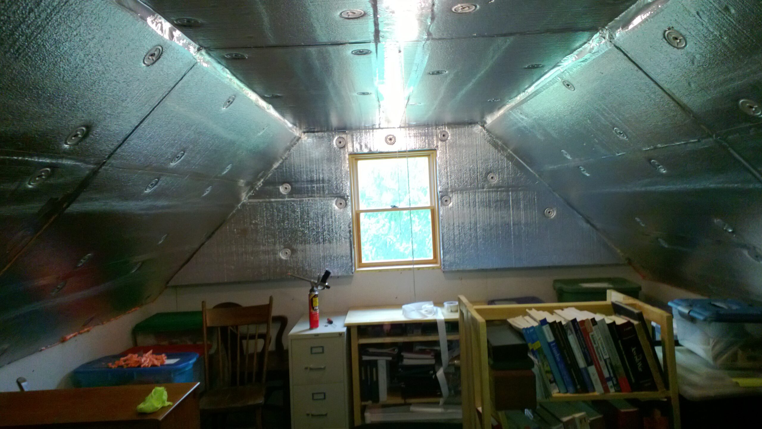 This storage attic was leaking air continuously, resulting in ice damming on the roof in the winter and high energy bills year-round.  We installed 4′ SilverGlo foam board insulation in this Naples, NY attic all along the rafters to seal off the leakage and subsequently increase the R-value in the room itself!