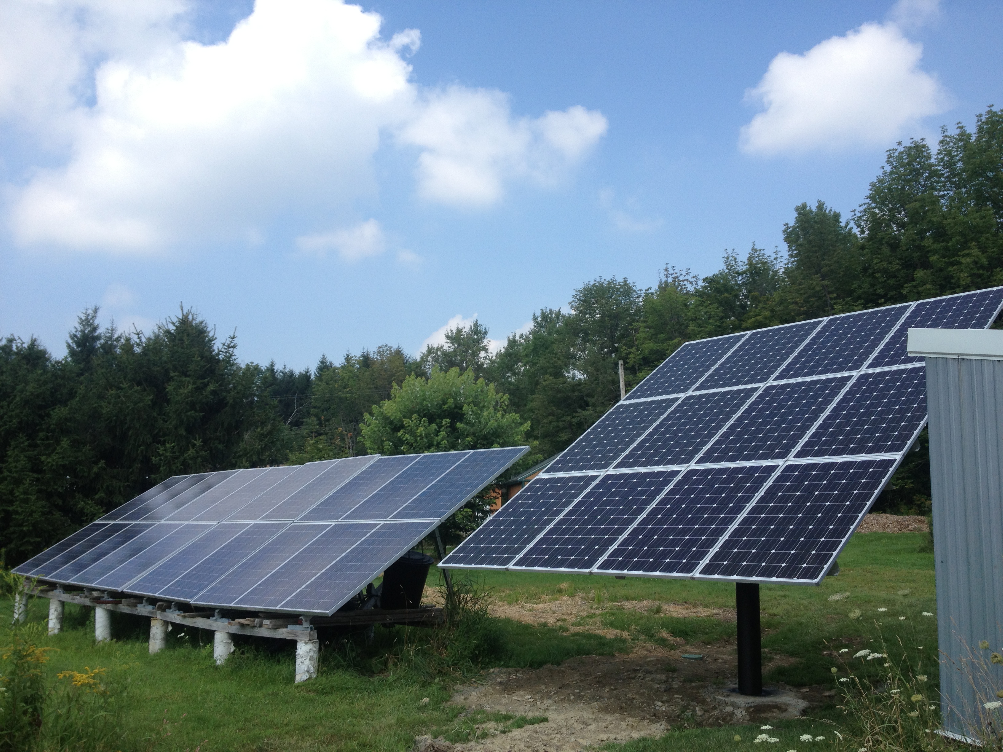 Years ago, we provided a solar panel installation in Cincinnatus, NY at the home of these environmentally-conscious customers, which was supplying them with almost 100% of their monthly electrical usage. Faced with constantly-rising fuel prices and the subsequent carbon emissions from their long commutes to work, they decided that it was in their best interest to purchase an electric car. With their existing system maxed out, additional energy was going to be be needed to supplement power for their new vehicle. Subsequently, we installed this new pole-mounted, 12-panel, 3.2kW SolarWorld system that will act as a clean, renewable ‘fuel station’ for their electric car for many years to come!