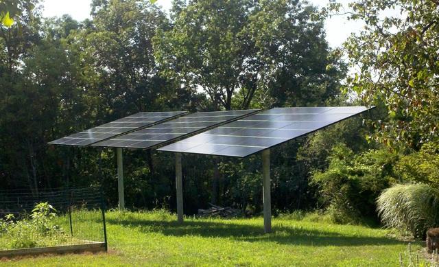 This 12.15 kW solar array was installed for a customer in Ithaca, NY. The array consists of 54 SunPower solar modules oriented South on three adjustable-tilt top-of-pole mounts. On average, the energy generated by this system will be about 33.9 kWh/day, or 12,384 kWh per year. This energy production corresponds to a CO2 (greenhouse gas) emissions savings of 16,100 lbs. per year!